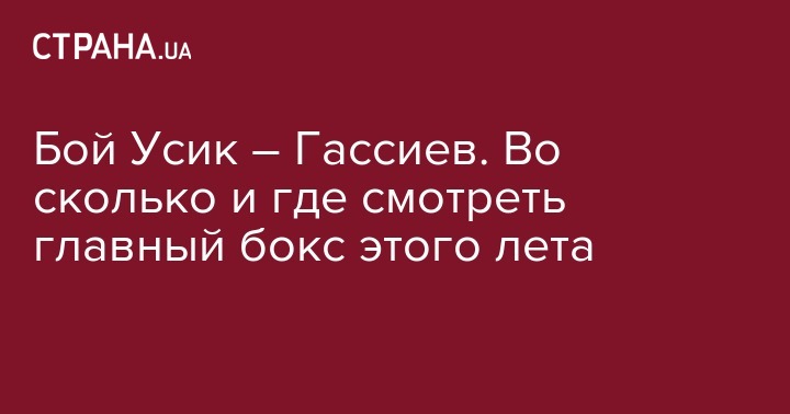 "Страна" проведет текстовую онлайн-трансляцию бокса Усик - Гассиев, а по телевизору посмотреть можно в эфире телеканала "Интер". Перед этим в эфире канала традиционно зрителям будет предложена аналитическая студия с участием экспертов и журналистов. В 20:30 на телеканале выйдет документальный фильм, посвященный украинскому боксеру. А спустя час там же начнется программа "Великий бокс".