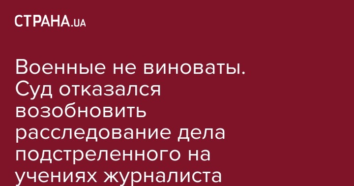 Суд отказался возобновить расследование дела журналиста, которого подстрелили на военных учениях. Об этом сказано в сюжете ТСН.