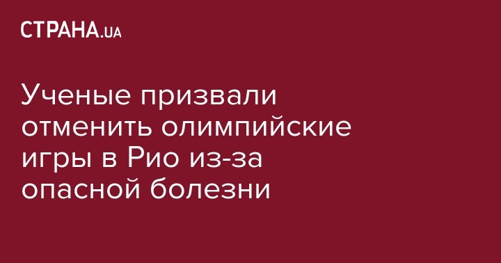 Ученые призвали отменить олимпийские игры в Рио из-за опасной болезни