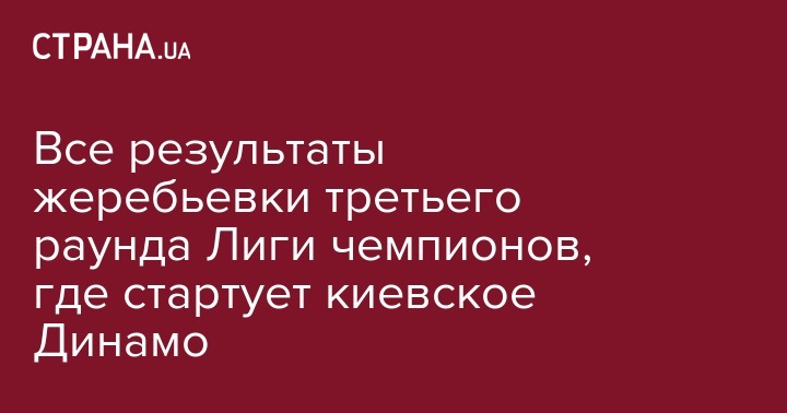 Все результаты жеребьевки третьего раунда Лиги чемпионов, где стартует киевское Динамо