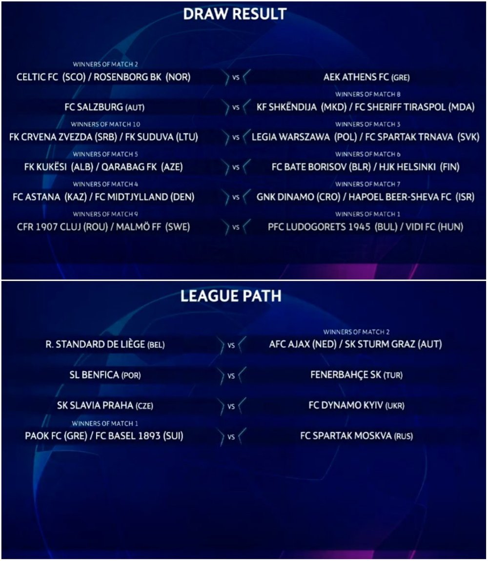 Команды, проигравшие на данной стадии, продолжат борьбу на групповом этапе Лиги Европы.