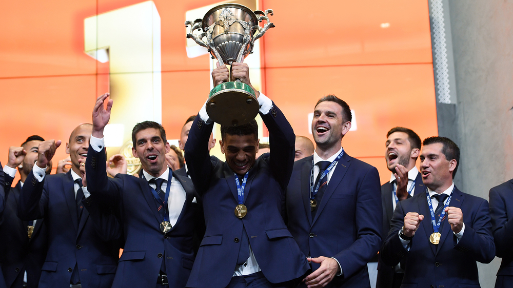 "Горняки" получили золотые медали сезона-2017-2018, а капитан команды Тайсон поднял чемпионский кубок.