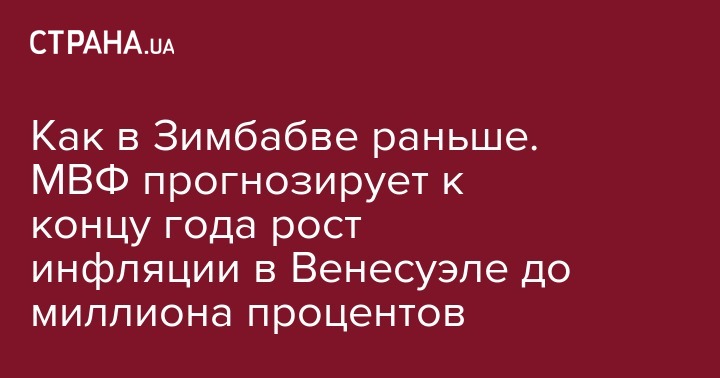 Как в Зимбабве раньше. МВФ прогнозирует к концу года рост инфляции в Венесуэле до миллиона процентов