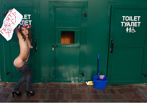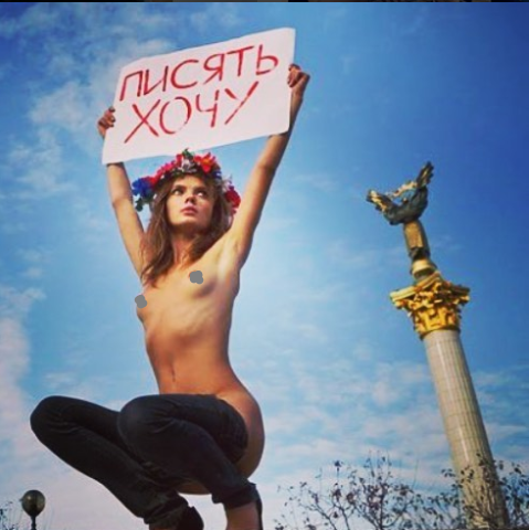 В составе Femen Шачко отметилась в акции на Майдане, призванной обратить внимание властей на нехватку общественных туалетов.