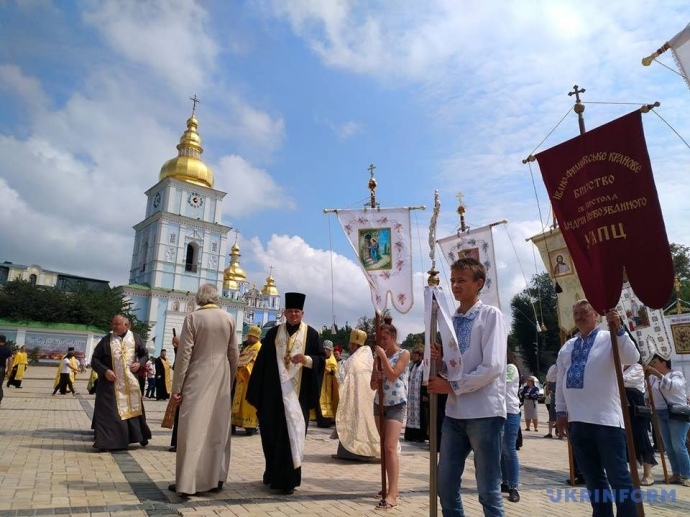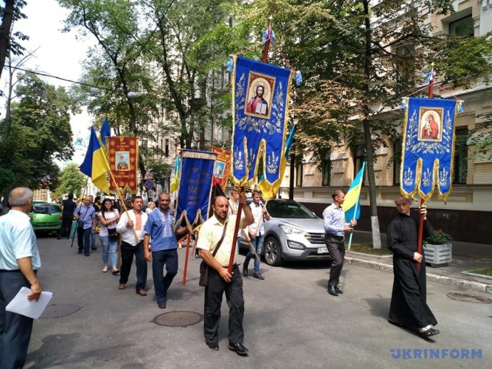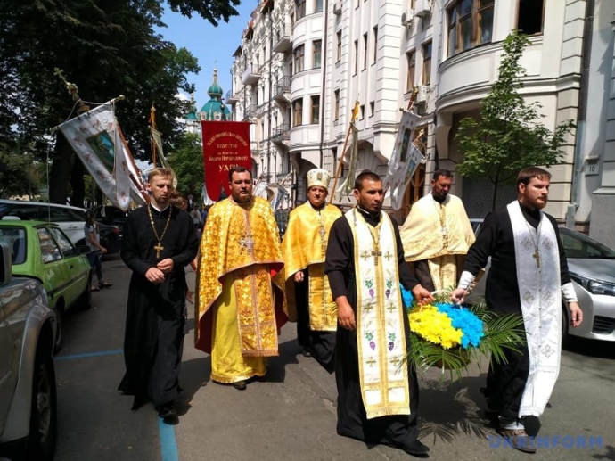 Сегодня, 24 июля, представители украинской автокефальной православной церкви (УАПЦ) провели в Киеве торжественный молебен и крестный ход по случаю 1030-летия Крещения Киевской Руси. Об этом сообщает корреспондент "Укринформа".
