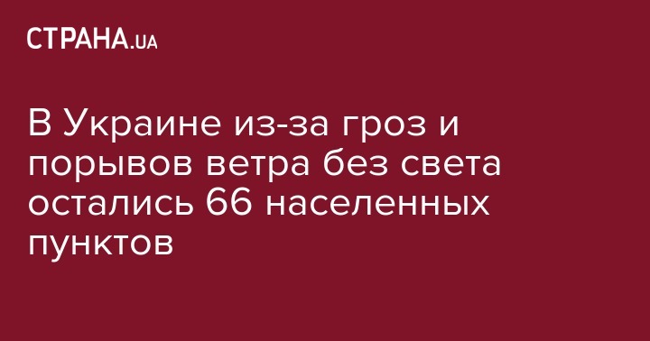 В Украине из-за гроз и порывов ветра без света остались 66 населенных пунктов