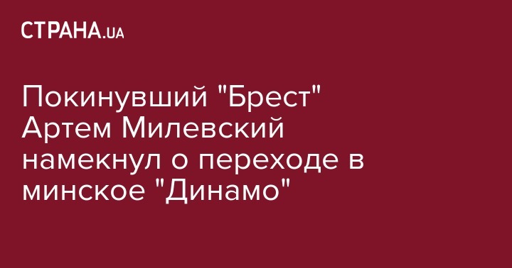 Экс-нападающий сборной Украины и киевского "Динамо" Артем Милевский, который оказался на грани ухода из "Динамо" (Брест) из-за нарушения дисциплины, может продолжить карьеру в минском клубе вместе с одноклубниками.