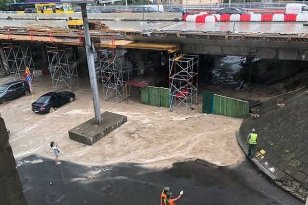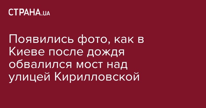 Появились фото, как в Киеве после дождя обвалился мост над улицей Кирилловской