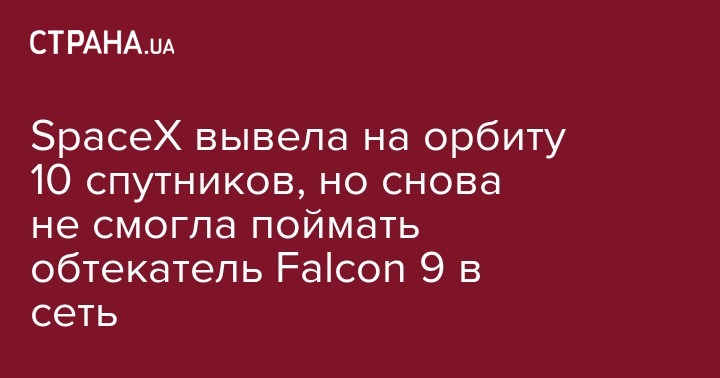 SpaceX снова не смогла поймать головной обтекатель ракеты Falcon 9. Об этом сообщает CNN со ссылкой на представителя компании.