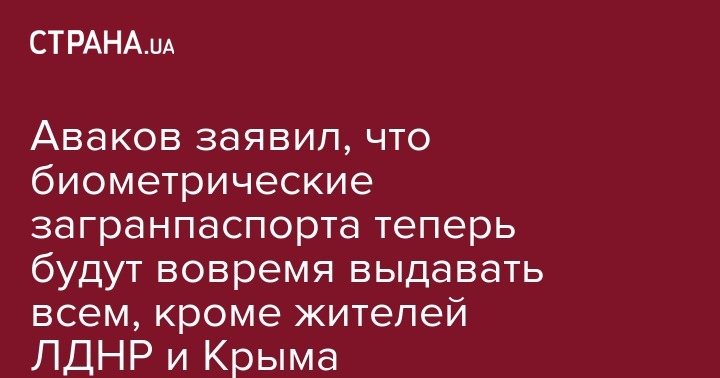 Аваков заявил, что биометрические загранпаспорта теперь будут вовремя выдавать всем, кроме жителей ЛДНР и Крыма