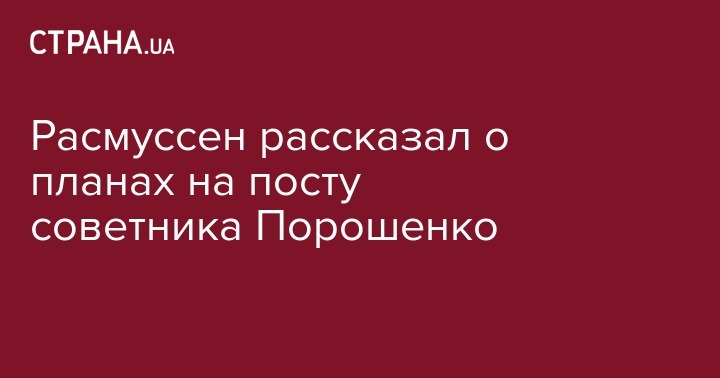 Расмуссен рассказал о планах на посту советника Порошенко