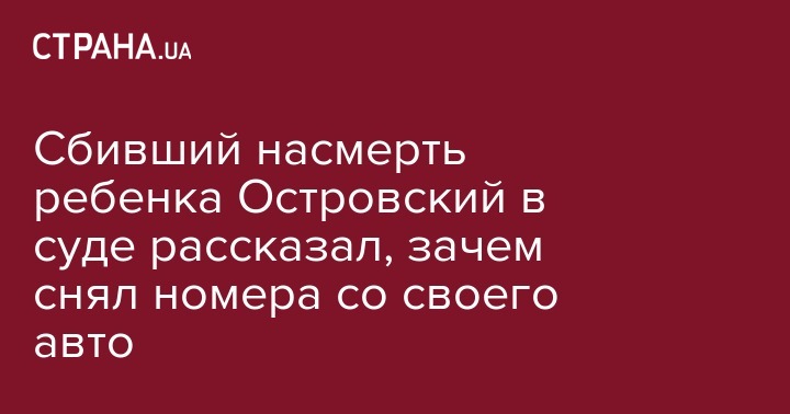 Во время судебного заседания Островский заявил, что после ДТП он не пытался уехать. По его словам, сначала он подошел к сбитой девочке, а затем, пребывая в шоке, снял задние номера со своего автомобиля.