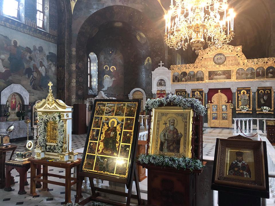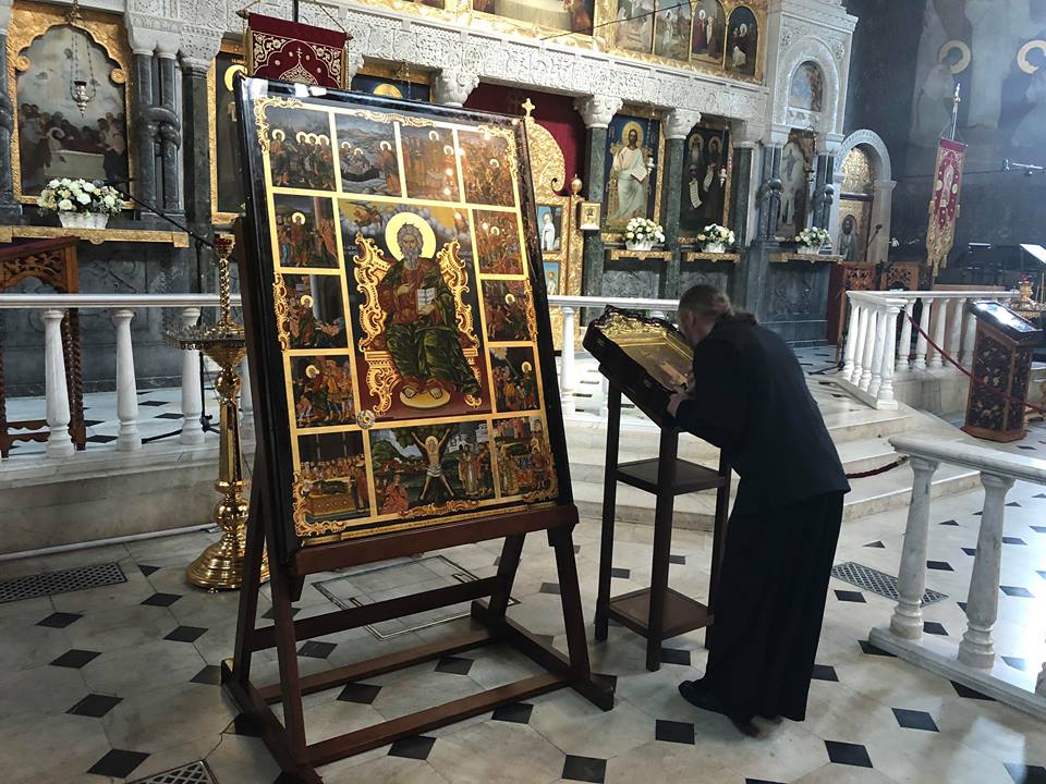 - мощи (правая рука) святого Георгия Победоносца, которые всегда находятся на Афоне.