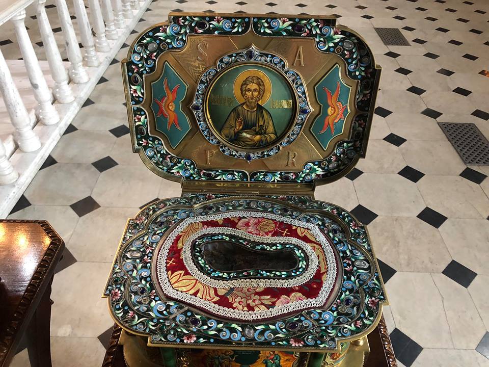 - икона Андрея Первозванного из монастыря Патр в Греции с частицей его мощей и частицей креста, на котором святого распяли.