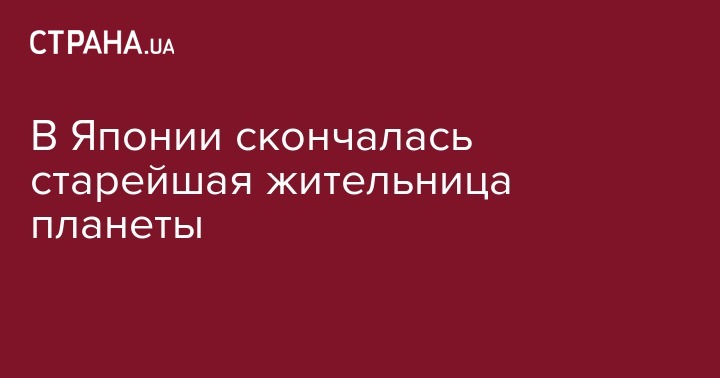 Ранее сообщалось, что возглавлявшая список мировых долгожительниц японка Наби Тадзима умерла 21 апреля в больнице на юго-западе Японии в возрасте 117 лет.