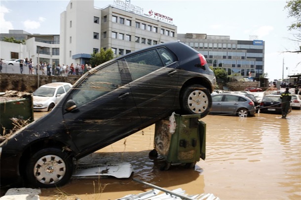За последние сутки в греческие службы спасения поступило более 140 сигналов о помощи, в основном, от водителей, оказавшихся заблокированными водой в своих автомобилях.