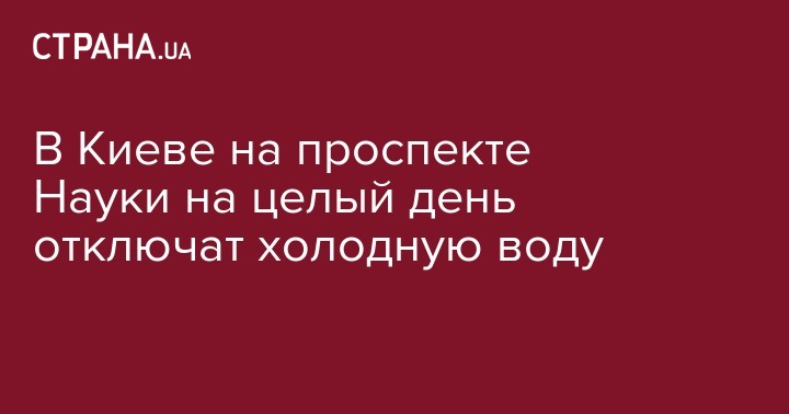 В Киеве на проспекте Науки в пятницу, 27 июля, с 9:00 до 24:00 будет отключено холодное водоснабжение в связи с проведением ремонтных работ.
