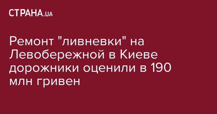 В пресс-службе "Киевавтодора" при этом сообщили, что полный комплекс работ по реконструкции системы ливнестоков обойдется в 190 млн гривен.