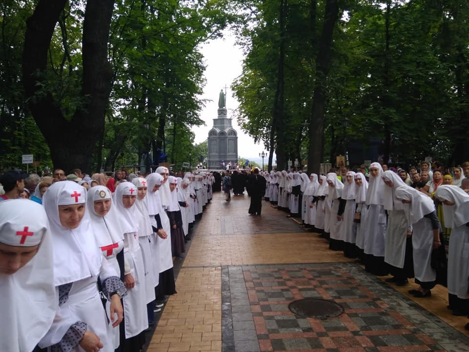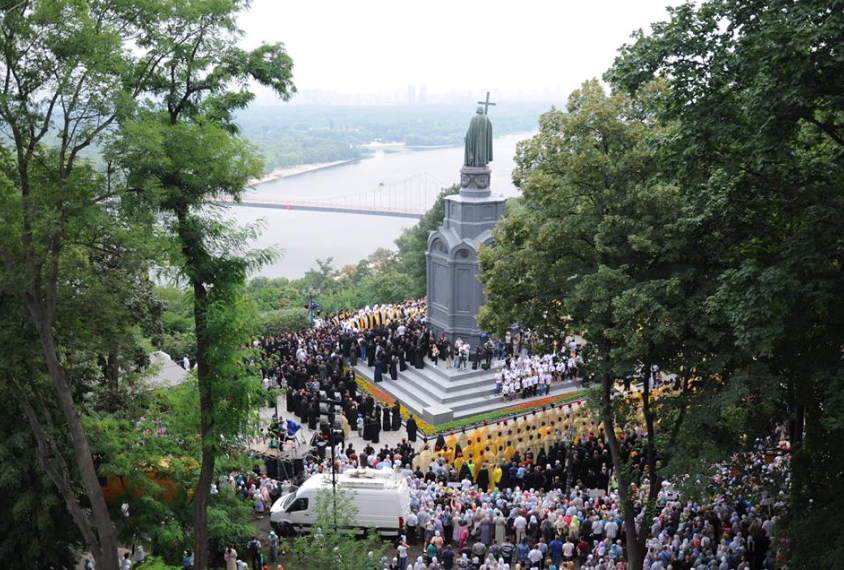 С 11:00 был открыт проход на Владимирскую горку. В 13:00 там начался молебен во главе с митрополитом киевским и всей Украины Онуфрием. А в 13:30 крестный ход проследовал в Киево-Печерскую лавру, где начнется всенощное бдение.