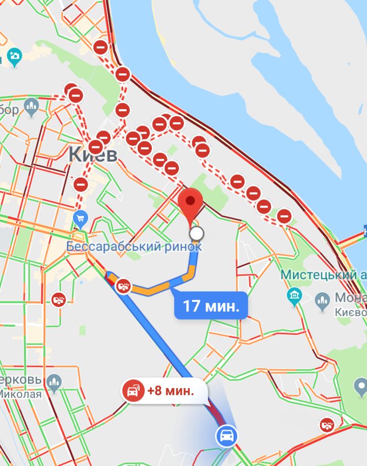 11:17  Вот, как сегодня выглядят Google-карты, которые рисуют автомаршруты по Киеву.