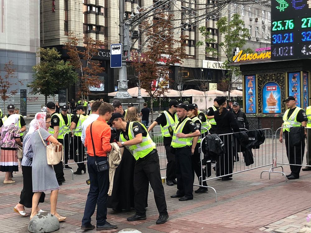 11:04  Тем временем на выходе из метро "Майдан" полиция устроила массовые обыски людей. Здесь тоже много верующих, которые строятся в колонну.