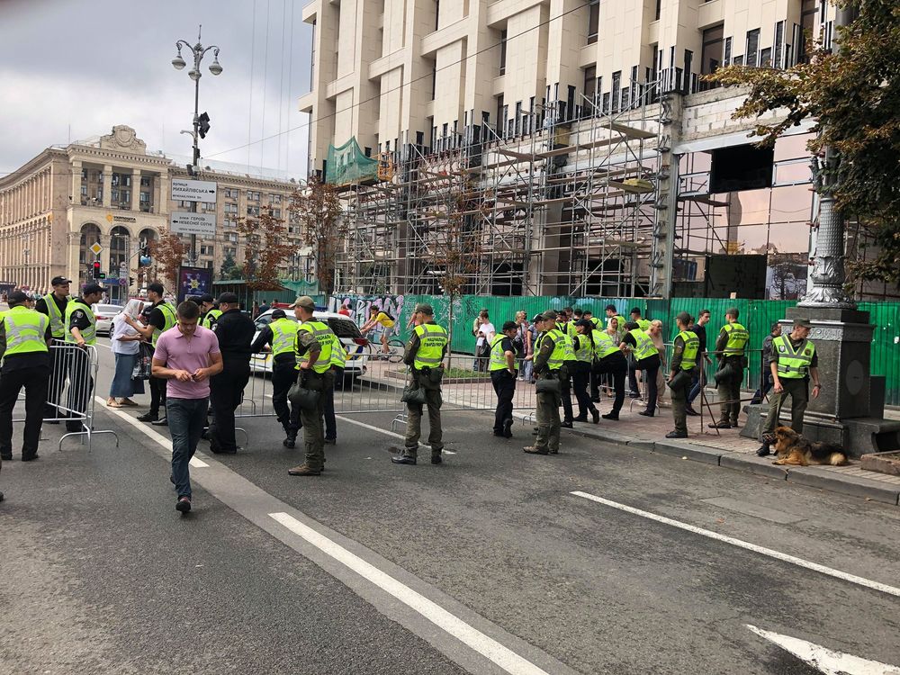 Кордон полиции находится возле дома профсоюзов по Крещатику в сторону Украинского дома. Туда пускают только после личных вещей.