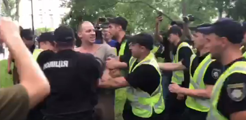 14:16  На Владимирской горке возле Кабмина активист "Братства" начал кричать участникам Крестного хода "Слава Украине!". Его задержала полиция и силой запихнула в бус. Судя по внешности, он принимал участие в блокаде телеканала Newsone.