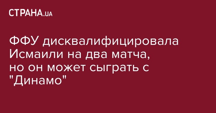 ФФУ дисквалифицировала Исмаили на два матча, но он может сыграть с "Динамо"