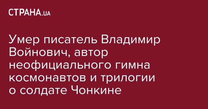 Войнович известен своей ироничной антиутопией "Москва 2042", а также трилогией о солдате Иване Чонкине. За роман "Монументальная пропаганда" он получил Государственную премию. Его песня "Четырнадцать минут до старта" стала неофициальным гимном советских космонавтов.
