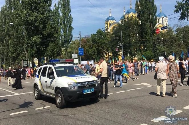 Так, шествие началось от Владимирского собора, колонну сопровождают правоохранители. В центре Киева усилены меры безопасности, пешеходов проверяют через рамки металлоискателей. Верующие идут в направлении Владимирской горки.