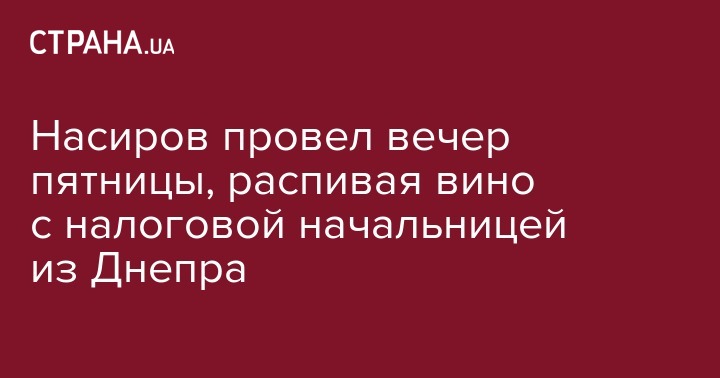 Вечером в пятницу, 27 июля, 39-летний экс-глава Государственной фискальной службы Украины Роман Насиров распивал вино вместе с  главой ГФСУ Днепропетровской области Оксаной Томчук. Соответствующие кадры оказались в распоряжении "Страны".