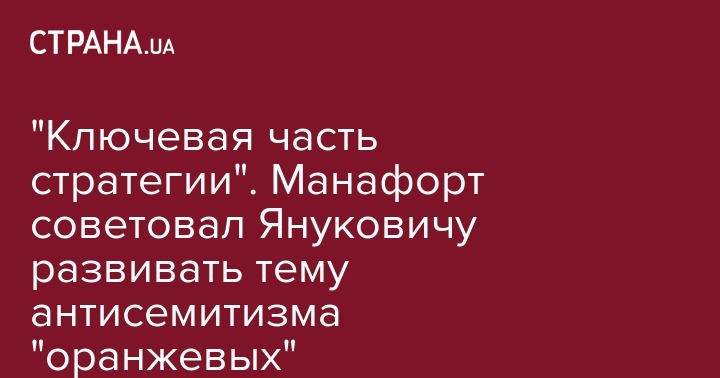 "Ключевая часть стратегии". Манафорт советовал Януковичу развивать тему антисемитизма "оранжевых"