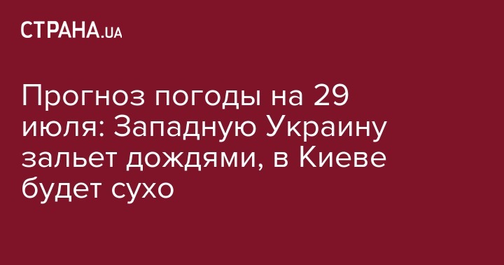 Сегодня, 29 июля, практически по всей западной Украине пройдут дожди с грозами. При этом непогода, по данным Укргидрометцентра, минует столицу и некоторые восточные регионы.