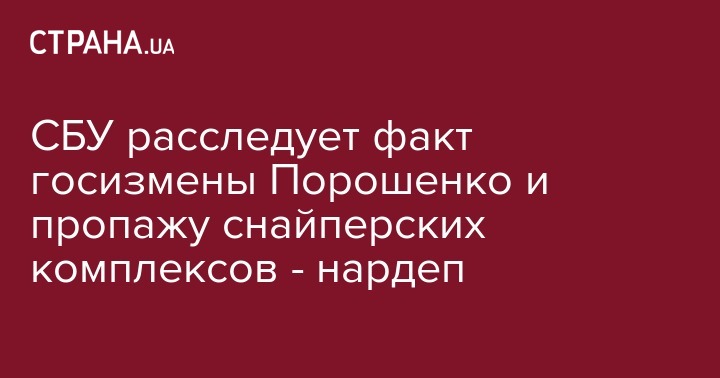 Народный депутат Виталий Куприй, заглавы Комитета Верховной Рады Украины по вопросам законодательного обеспечения правоохранительной деятельности заявил, что СБУ расследует факт государственной измены Петра Порошенко и кражу снайперских комплексов у спецназовцев.