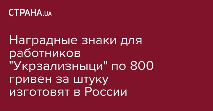В России по заказу "Укрзализныци" изготовят партию наградных знаков "Почетный железнодорожник" по 800 гривен за штуку.