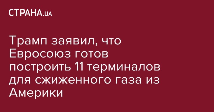После переговоров с премьер-министром Италии Джузеппе Конте, президент США Дональд Трамп заявил, что Евросоюз готов построить 9 - 11 терминалов для приема сжиженного газа из Америки.
