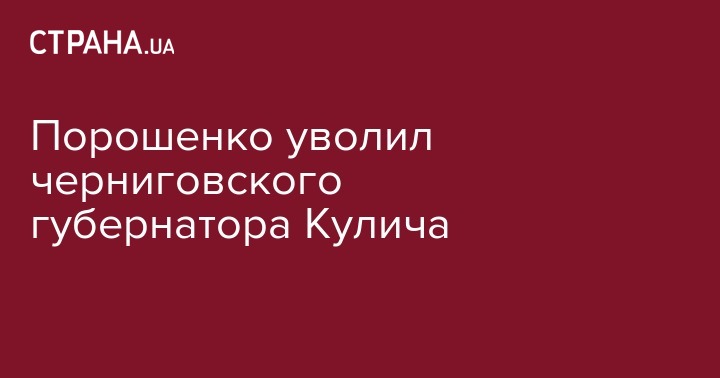 Президент Украины Петр Порошенко своим указом уволил с должности главу Черниговской областной государственной администрации Валерия Кулича. Об этом сообщает пресс-служба главы государства.