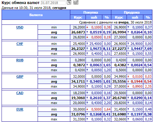 Как сообщает ubr.ua последние торги июля начались с подорожания доллара на 4 копейки - до 26,80 грн./$. Начальник управления дилинговых операций Райффайзен банка Аваль Юрий Гриненко отметил высокую активность межбанка с утра 31 июля.