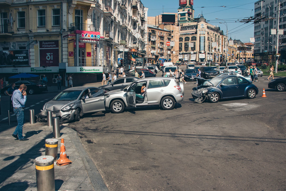 В Киеве на Бассейной улице около 10:00 столкнулись три автомобиля - Volkswagen Beetle, Hyundai и Toyota. Авария случилась, когда Volkswagen Beetle не остановился на красный. После столкновения с другими автомобилями он загорелся. Видео с видеорегистратора одной из машин публикует "Информатор".