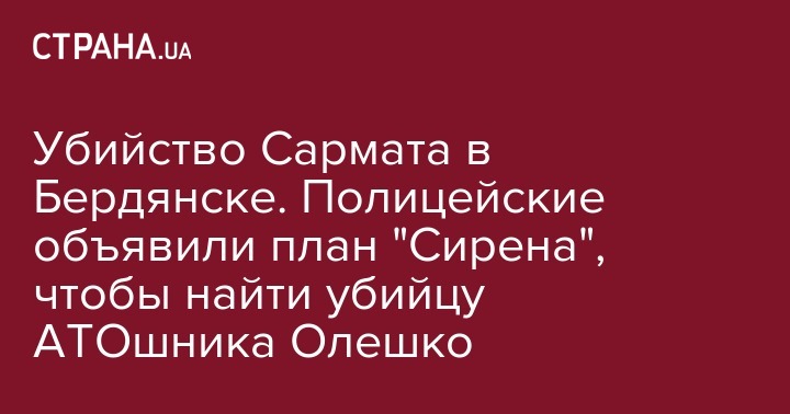 Полиция открыла уголовное производство после убийства в Бердянске Запорожской области участника АТО, бывшего бойца батальона "Донбасс" Виталия Олешко с позывным "Сармат". Открыто уголовное производство по ст. 115 Уголовного кодекса Украины (умышленное убийство). Об этом сообщает пресс-служба Нацполиции Украины.