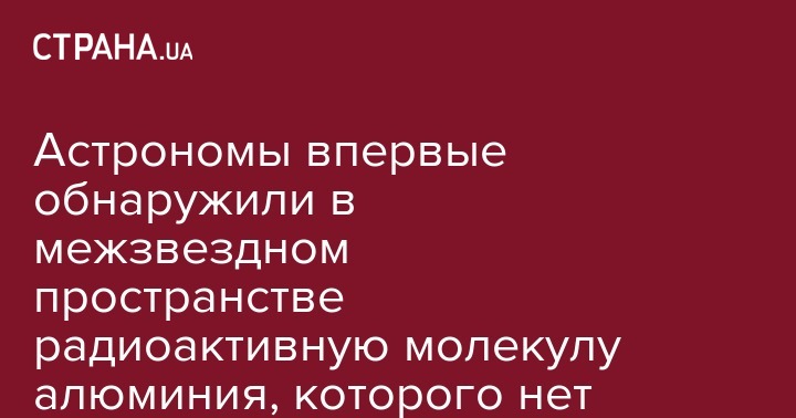 Астрономы впервые обнаружили в межзвездном пространстве радиоактивную молекулу алюминия, которого нет на Земле