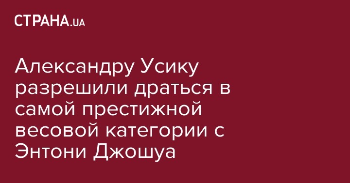 Представители Всемирной боксерской организации (WBO) разрешили абсолютному чемпиону мира в первом тяжелом весе (до 90,7 кг) украинцу Александру Усику требовать боя с британцем-супертяжеловесом Энтони Джошуа.