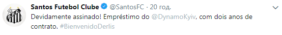 "Динамо" и бразильский "Сантос" обменялись футболистами