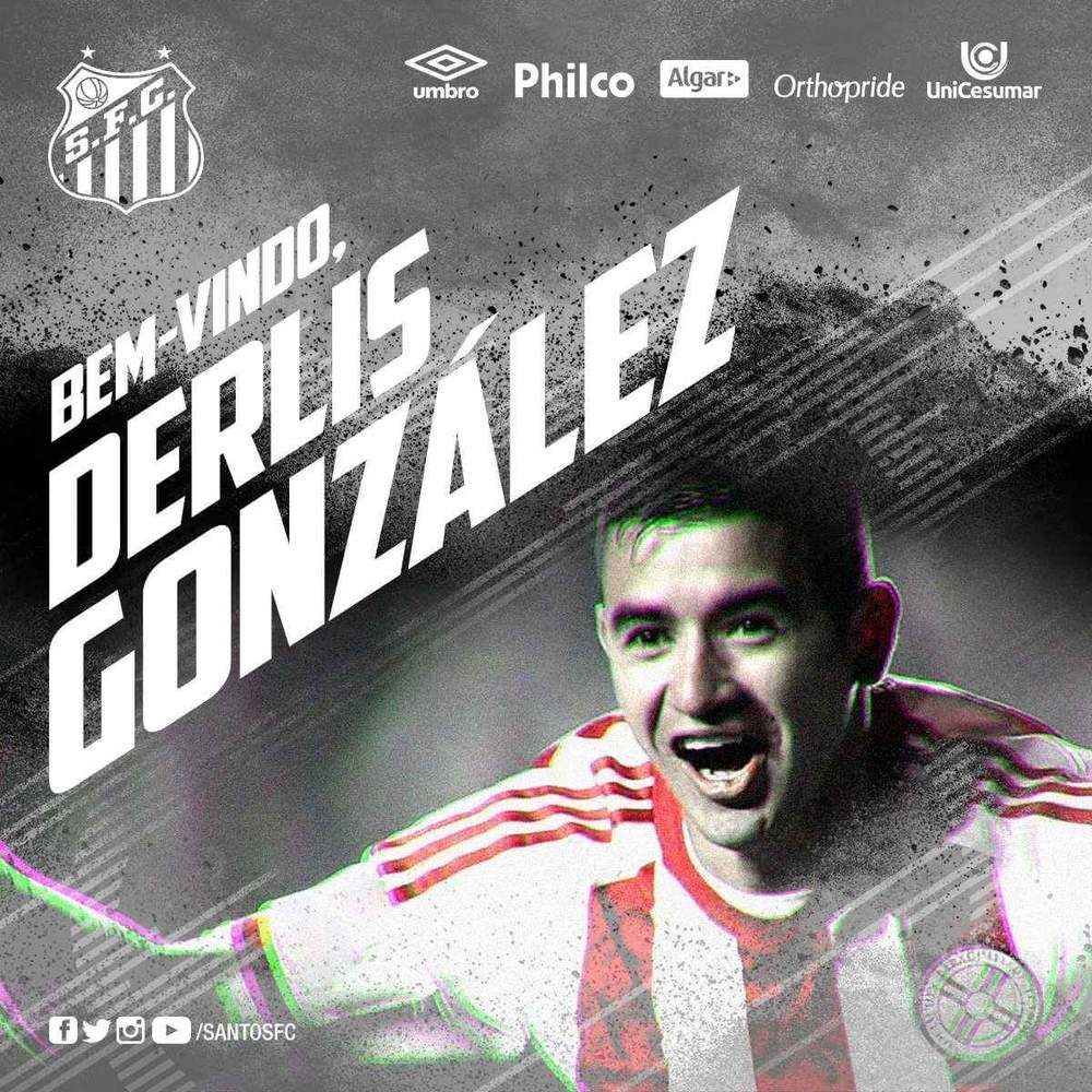 Нападающий киевского "Динамо" Дерлис Гонсалес отбыл в аренду в бразильский "Сантос". Он подписал контракт с новым клубом на два года.