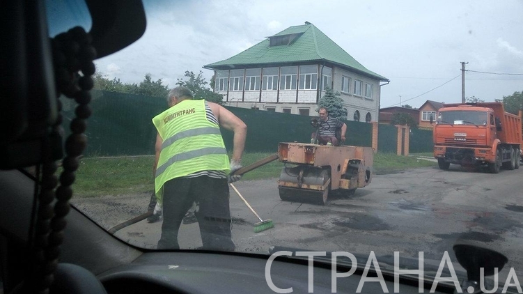 В Броварском районе Киевской области, не доезжая до села Литочки, прямо в воскресенье местные коммунальщики начали в спешном порядке проводить ямочный ремонт дороги. Об этом сообщает корреспондент "Страны" с места событий.