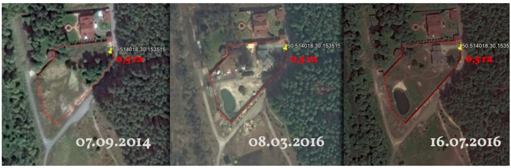 Движение Честно дополнительно исследовало, когда был построен дом, и сравнил изображение с Google Maps. По состоянию на 2014 год, когда Виктория Сюмар баллотировалась в парламент, на участке не было никаких признаков строительства. А уже в началу 2016 году там появились и дом, и искусственное озеро.
