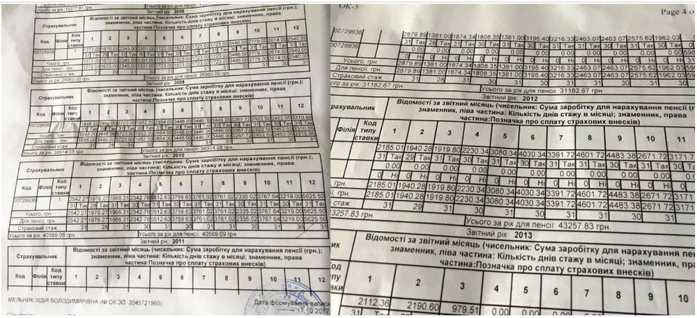 "Я попросила маму выписки по ее заработных плат за последние годы до 2015 года (кроме них, она получала параллельно и пенсию примерно в подобных размерах) как государственный служащий. Внизу подаю фото этих выписок, где, относительно курса гривны к доллару, всего за несколько лет ее собственные доходы составили более 35 000 долларов ", - отмечает Сюмар в своем посте и добавляет документы.