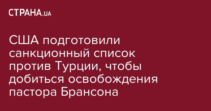 Вашингтон подготовил список частных и юридических лиц в Турции, против которых могут быть введены санкции в ответ на содержание под стражей пастора Эндрю Брансона, чьего освобождения добивается администрация США, сообщило агентство Bloomberg со ссылкой на источники.