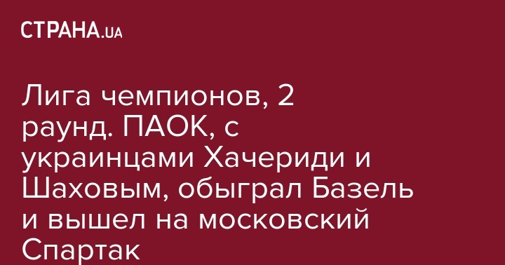 Вчера, 1 августа, в Европе завершились матчи второго квалификационного раунда Лиги чемпионов. Внимание украинских болельщиков было приковано к паре Базель - ПАОК. Причина проста. За греческий клуб играют два украинских легионера - Евгений Хачериди и Евгений Шахов. Они помогли своей команде пройти швейцарский барьер и выйти в следующий этап, где ПАОК сыграет с московским Спартаком.