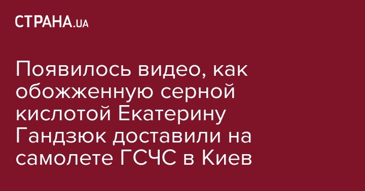 Появилось видео, как обожженную серной кислотой Екатерину Гандзюк доставили на самолете ГСЧС в Киев